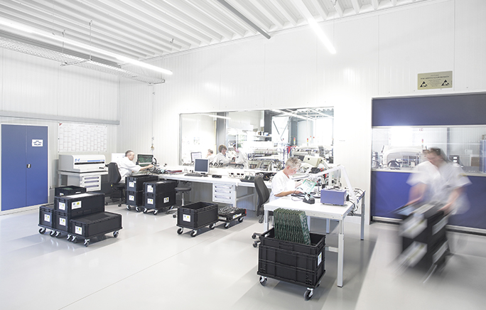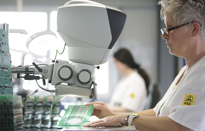 Trotz modernster Fertigungsprozesse und genauester Verarbeitung werden unsere Erzeugnisse vor ihrer Auslieferung an den Kunden eingehend überprüft. Hierzu setzten wir auf die Automatische Optische Inspektion (AOI), einem Testverfahren, das mithilfe von hochauflösenden Kameras u.a. die genaue Platzierung, die Polarität und die korrekte Verlötung kontrolliert. Über 3.000 Bauteile können so pro Minute vollautomatisch inspiziert werden. Ein speziell geschulter Operator bewertet anschließend angezeigte Fehlerstellen und repariert diese ggf. manuell.